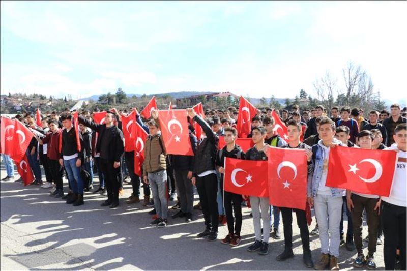 Ellerinde Türk bayraklarıyla birlikte slogan atarak, Askerlik Şubesine kadar gelen öğrenciler burada saygı duruşunda bulunarak İstiklal Marşı okudu. Polis ekiplerinin güvenlik önlemleri altında daha sonra kent meydanına yürüyen öğrenciler, burada komando marşı okuduktan sonra okullarına geri döndü.