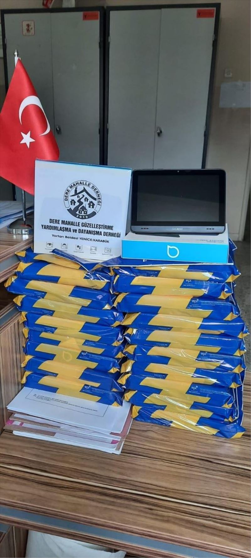 Yortan Dere Mahalle Derneği tarafından ilkokul çocuklarının eğitimine destek verilmek üzere alınan tabletler okula teslim edildi.