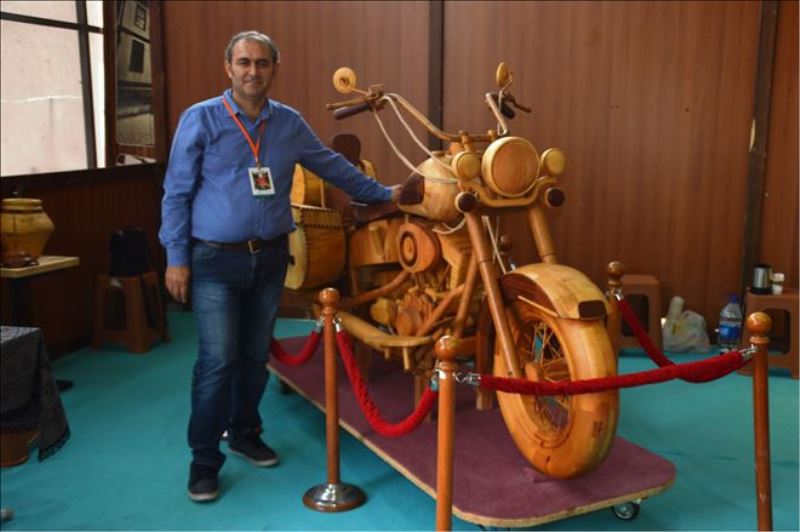 Kastamonu´da hobi olarak ahşap işleme işiyle ilgilenmeye başlayan makine mühendisi Celal Özcan tarafından yapılan ahşap motosiklet, 8. Kastamonu Ahşap Fuarının gözdesi haline geldi. Birbirinden faklı ürünlerin sergilendiği fuara katılan Özcan, 3 yılda tamamladığı ahşap motosikletini, ziyaretçilerin beğenisine sundu. 200 bin TL´ye alıcılarını bekleyen tahtadan motosiklet, fuara gelen ziyaretçilerin gözdesi haline geldi.