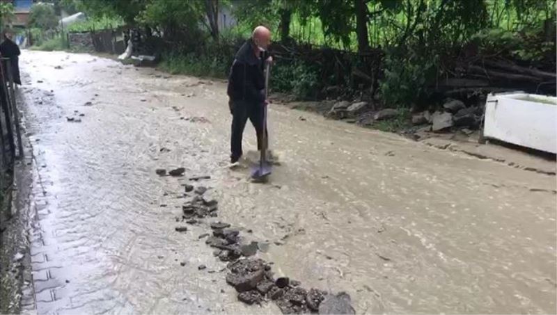 Yenice ilçesinde öğleden sonra aniden bastıran sağanak yağış nedeniyle bahçeler sular altında kalırken, yollar dere yatağına döndü. Metrekareye 30 kilogram yağışın düştüğü ilçeye bağlı Saray köyünde menfezlerin tıkanması nedeniyle su ile dolan karayolu ulaşıma kapandı. İş makinelerinin yardımıyla menfez temizlendi.
