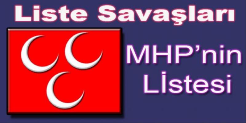 MHP’nin isim listesi, Asıl Üye Adaylar; “Cemal Akarsu, Emrah Tufan, Hatice Çelik, Şükran Şentürk, Bilgi Özodabaş, Adem Akbıyık, Emin Makaracı, Mete Şirin, Hikmet Çakıroğlu, Yaşar Yavuz, Şakir Bilgiç, Selma Çetin, Ömer Erdem” Yedek Adaylar; “İsmail Çelik, İrfan Şahin, Kamil Aydın, Haydar Kara” İl Genel Meclis adayları; “Ekrem Akarsu, Muharrem Kaba, Ahmet Kaptan, Ali Cevdet Alperen” Yedek adaylar, “Yaşar Akdağ, Kamil Kaya”