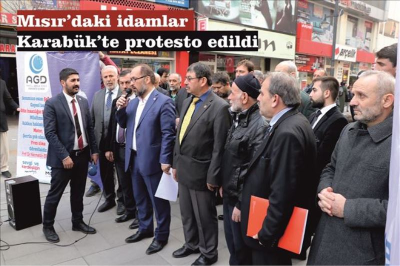 Hürriyet Caddesinde bulunan Eski Belediye Binası önünde toplanan kalabalık adına konuşan Anadolu Gençlik Derneği (AGD) Karabük Şubesi Başkanı Aziz Gündoğdu 2015 Yılında Mısır´ın Başkenti Kahire´de bombalı bir saldırıda hayatını kaybeden Başsavcı Hişam Berekat´ın ölümüne sebep oldukları suçlamasıyla yargılanan Müslüman Kardeşler üyesi 9 kişinin idam edilmesinin üzüntüsü ve şaşkınlığı içerisinde olduklarını söyledi.
