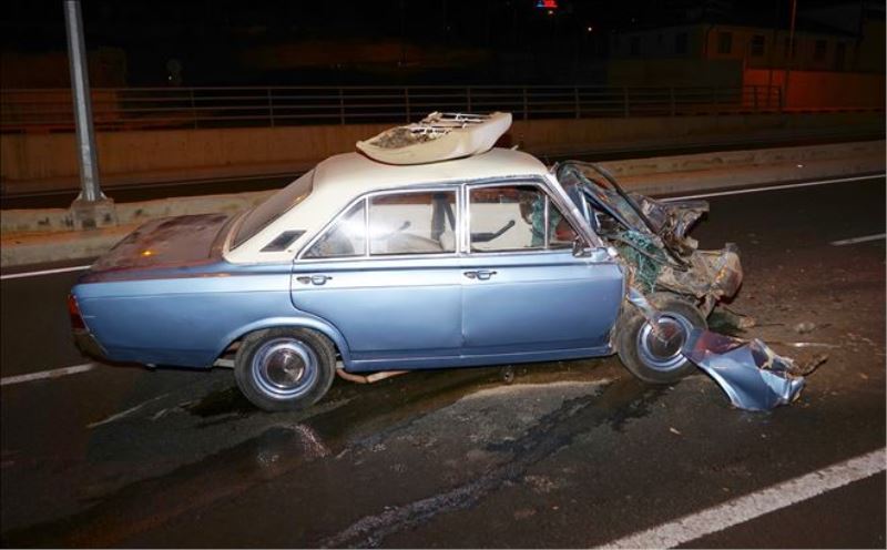 Odun yüklü kamyona çarpan otomobil hurdaya döndü