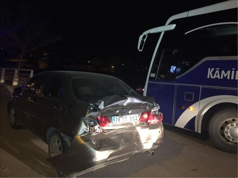 Karabük Safranbolu yolu Balıklar Kayası Kavşağında kırmızı ışıkta bekleyen Erhan Özsoy (48) idaresindeki 78 SK 052 plakalı araca Murat Dalgıç (48) idaresindeki otobüs arkadan çarptı.