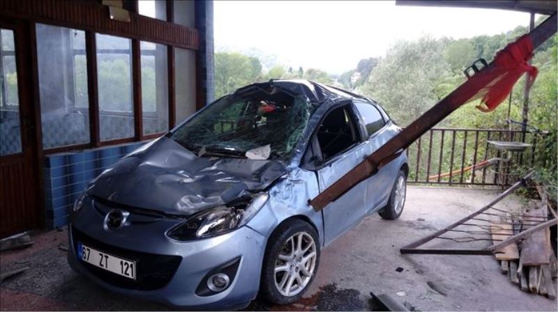 Zonguldak´ta direksiyon hakimiyetini kaybeden sürücü terasa uçtu. Kazada 2 kişi yaralandı.