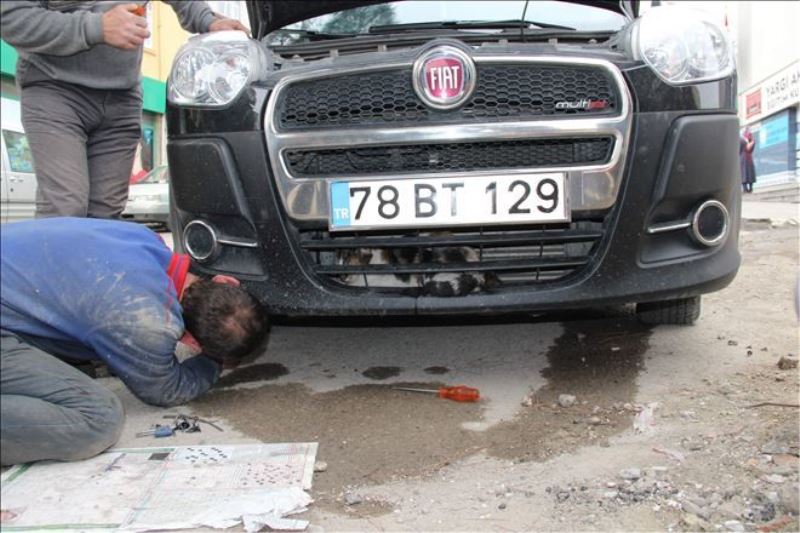 Edinilen bilgiye göre, Postane Caddesi üzerinde Muharrem Civa idaresindeki 78 BT 129 plakalı otomobilin tampon kısmına sıkışmış bir kedi gören vatandaşlar, sürücüyü durdurarak durumu anlattı. Aracını yol kenarına çeken sürücü Civa, vatandaşların yardımı ile yaklaşık yarım saat boyunca kediyi sıkıştığı yerden kurtarmak için çaba sarf etti. Kedinin sıkıştığı yerin dar olması sonucu Muharrem Civa, sanayideki kaporta ustaları Nihat Siyam ve Çetin Sevdalı´yı arayıp, durumu anlatarak yardım istedi. Bunun üzerine olay yerine gelen kaporta ustaları tamponu tamamen sökerek kediyi kurtardı. Yaralı olduğu görülen kedi kurtarılınca kaçmak yerine yeniden kurtarıldığı alana girdi. Tekrar aynı yerden alınan kedi daha sonra yıkılan PTT binasının bulunduğu alana bırakıldı. Yaramaz kedi burada da Telekom binasının alt kısmına girerek gözden kayboldu.