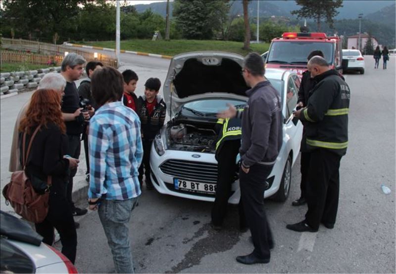 Yenişehir Mahallesi Nilüfer Sokak´ta park halimdeki 78 BT 888 plakalı otomobilin motor bölümünden gelen kedi sesini duyan üniversiteli öğrenciler 1 saat beklemenin ardından gelen sürücü Osman Demircioğlu´na durumu bildirdi. Öğrencilerin yardımıyla yavru kediyi sıkıştığı yerden çıkaramayan otomobil sahibi daha sonra durumu itfaiye ekiplerine bildirdi. Olay yerine gelen itfaiye ekipleri, kediyi kurtarmaya çalıştı. Dar bir kesimde sıkışan kediyi kurtarmak için vatandaşlarda seferber oldu. Yerinden sökülen akünün ardından elleri daha küçük bir vatandaş kediyi sıkıştığı yerden kurtardı. Yol kenarında ağaçlık bir alana bırakılan yavru kedi gözlerden kayboldu.
