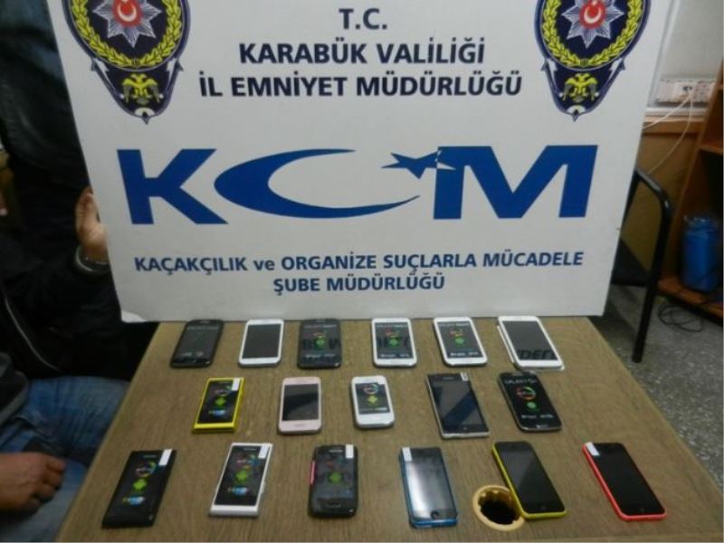 Karabük İl Emniyet Müdürlüğü Kaçakçılık ve Organize Suçlarla Şube Müdürlüğü ekipleri kaçakçılık faaliyetlerinin önlenmesi amacıyla yaptıkları çalışmalar kapsamında Hürriyet Mahallesi İnönü Caddesi üzerinde gümrük kaçağı cep telefonu sattığı tespit edilen E.T. (33) isimli şahıs durdurularak elindeki poşette arama yapıldı. Yapılan aramada maddi değeri yaklaşık 30 bin TL olan 17 adet çeşitli markalarda IMEI numaraları klonlanmak suretiyle değiştirilmiş cep telefonları ele geçirildi. Şüpheli hakkında 5607 Sayılı Kanuna Muhalefet Suçundan gerekli adli işlem yapılırken, “İlimizde her türlü suç ve suç oluşumlarına karşı mücadelemiz kesintisiz sürdürülecektir” denildi.