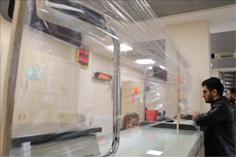 PTT Karabük Baş Müdürlüğünde yeni tip korona virüs (Kovid-19) tedbirleri kapsamında gişe personeli ile müşteriler arasına 'streç film' ile önlem alındı.