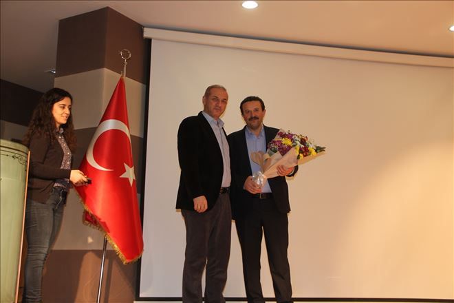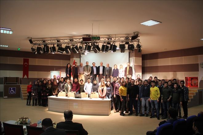 Konferans sonunda Karabük Üniversitesi Mühendislik Fakültesi Dekanı Prof. Dr. Mehmet Özalp tarafından Uludağ Üniversitesi İnşaat Mühendisliği Bölüm Başkanı Prof. Dr. Adem Doğangün´e hediye takdim edilirken öğrencilerin de olduğu hatıra fotoğrafı çekildi.
