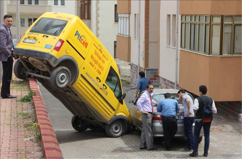 Safranbolu Cemal Caymaz Mahallesi Kışla Sokak`ta PTT`ye ait 06 FA 3920 plakalı aracın sürücü Murat Akyurt, aracı yol kenarına bırakarak kargoyu sahibine teslim etmek için ayrıldı. Bu sırada araç kendiliğinden hareket ederek bir sitenin duvarında asılı kaldı. Duvarda asılı kalan araç park halindeki Nesrin Uysal`a ait 34 BB 7358 plakalı otomobilde de hasara neden oldu.