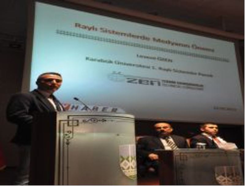 Kardemir de Ray Üretimi adlı sunumunu gerçekleştiren KARDEMİR A.Ş. Kalite Yönetim Müdürü Osman Yazaroğlu; KARDEMİR olarak bu gelişmeden gurur duyuyoruz. Türkiye de ilk demir çelik fabrikası olma özelliğine sahip bir kuruluşuz. Ayrıca ray üreten tek kuruluşuz ve birçok kuruluşun kurulmasına katkı sağlamaktayız. Bunların yanında Karabük Üniversitesiyle birlikte Türkiyenin tek ray test merkezini kurarak üretilen demirlerin testlerini burada yapacağız. Böylelikle dışa bağımlı olmaktan da kurtulacağız. Karabük te demiryolu malzemelerin hepsini yaparak, test merkezimizle birlikte Karabük ü üretim merkezi haline getirmek hedefimizdir. Bu panele katkı sağlayan herkese teşekkür ederim. Dedi