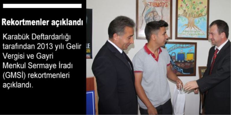 Karabük İl Defterdarlığında düzenlenen törenle Vergi Haftası nedeni ile Ortaokul ve Liseler arasında düzenlenen sloganlı afiş yarışmasında dereceye giren öğrencilere ödülleri verilirken, aynı törende 2013 yılı Gelir Vergisi ve Gayri Menkul Sermaye İradı (GMSİ) rekortmenleri açıklandı.