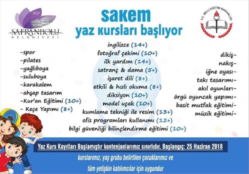 Ayrıca Safranbolu Belediyesi tarafından kurs kayıtları için SAKEM Aslanlar Merkez bina ve şubelerinden başvuruların alınacağı ifade edildi.