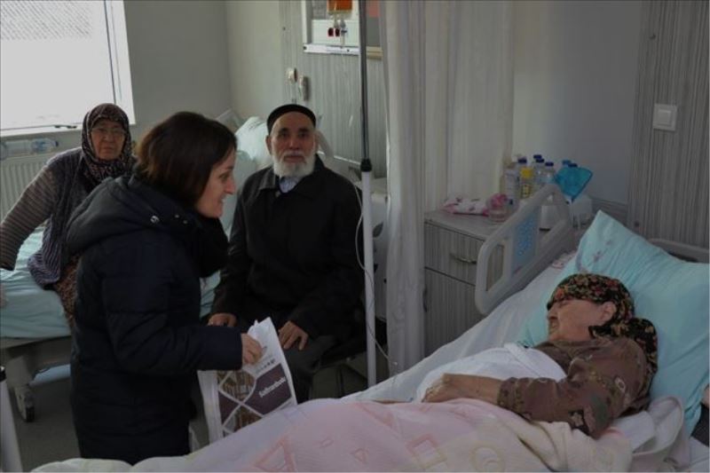 Müdürlük personeli hasta ziyaretleri esnasında hasta ihtiyacı doğrultusunda hediyeler takdim ediyor.