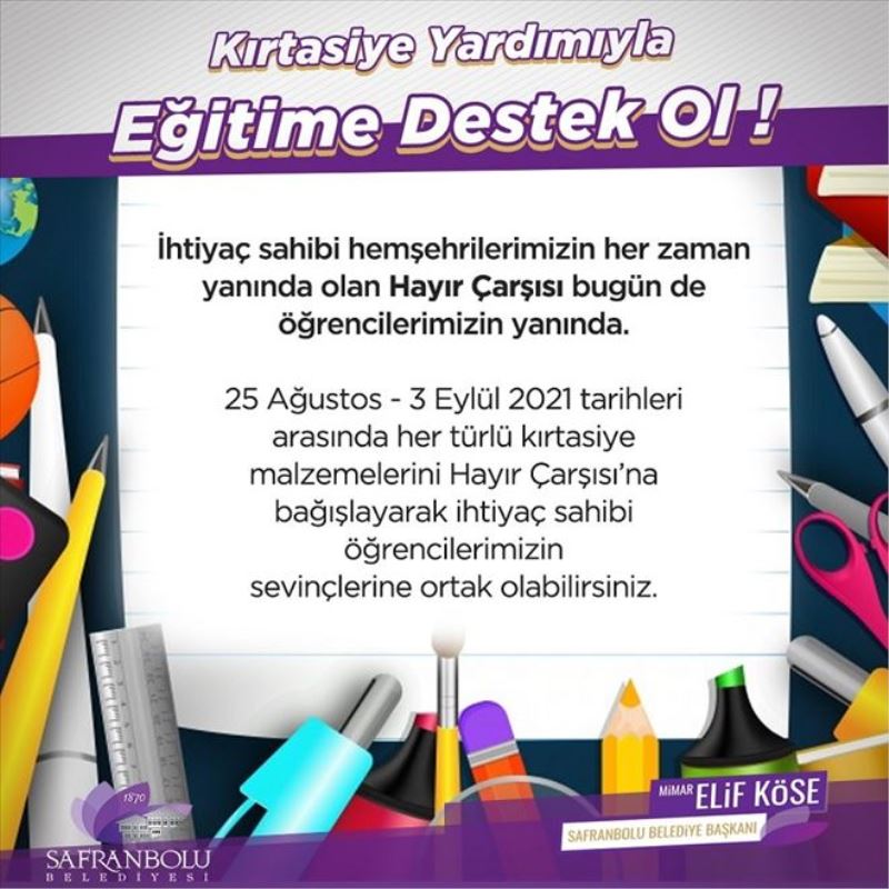 Safranbolu Belediye Başkanı Elif Köse konu ile ilgili, “Ne zaman bir destek çağrısı yapsak yoğun katılım sağlayan halkımız, geleceğimizin teminatı çocuklarımız için de harekete geçecektir. Belki de yarının doktorlarının, hemşirele-rinin, mimarlarının ya da mühendislerinin eğitiminde sizlerin de katkısı olacak. Ben şimdiden tüm ihtiyaç sahibi çocuklarımız adına kampanyaya destek verecek herkese teşekkür ediyorum.” ifadelerini kullandı.
