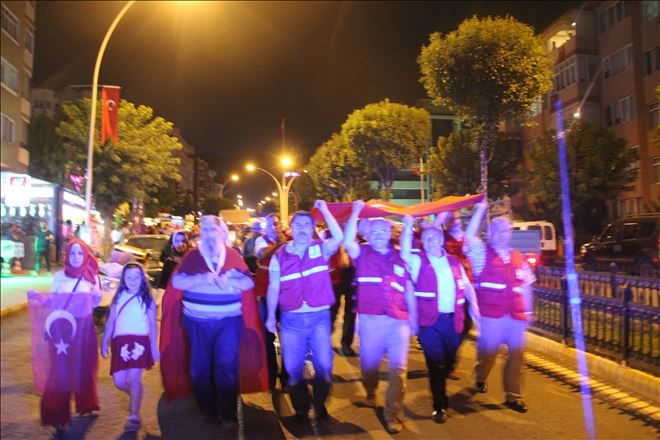 Dedeoğlu camii önünde başlayan yürüyüşe, Safranbolu Kaymakamı Murat Bulacak, Safranbolu Belediye Başkanı Necdet Aksoy, İl Genel Meclisi Ahmet Sözen, siyasi parti temsilcileri, sivil toplum kuruluşları ve yaklaşık 4 bin kişi katıldı. Türk bayraklarıyla Misak-ı Milli Meydanı´na yürüyen vatandaşlar, tekbirler getirerek , ‘Şehitler ölmez vatan bölünmez´, ‘Vatan sana canım feda´ sloganları attı. Safranbolu Müzekent Motosiklet Kulübü üyesi 50 motosikletli de yürüyüşe destek verdi.