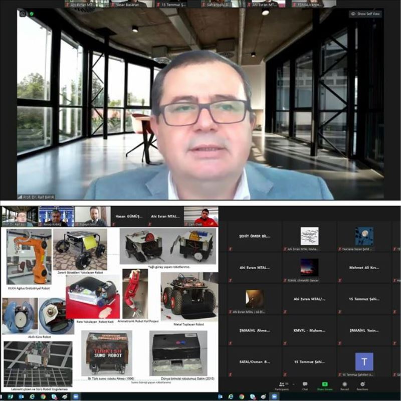 Seminerde sunum yapan Prof. Dr. Bayır; Robot Teknolojileri Uygulama ve Araştırma Merkezi´nin çalışmaları ve başarıları, robot teknolojilerinin tarihsel gelişimi, robot teknolojilerinde dünyadaki son durum, yapay zeka, türleri, temel özellikleri, yapay zekanın kullanım alanları ve geleceği konularında bilgiler verdi.