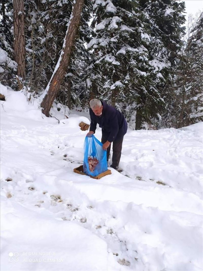 Kar yağışının ardından doğada yiyecek bulmakta zorlanan hayvanların beslenme ihtiyaçlarının karşılanması için doğaya yiyecek takviyesi yapan Safranbolu Orman İşletme Müdürlüğü, yaban hayvanlarını unutmadı.