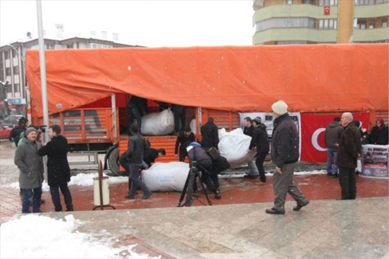 Törenin ardından, insani yardım malzemelerinin bulunduğu yardım tırı, dualar eşliğinde Halep´e gönderildi.