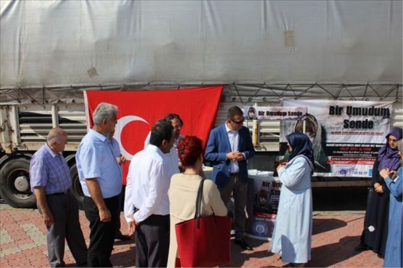 Özellikle çocuk giyeceği ve mamanın ağırlıkta olduğu bir tır dolusu yardım Safranbolu Misak-ı Milli Demokrasi Meydanı´ndan dualarla yola çıktı.