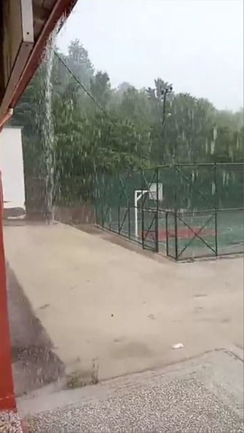 Sağanak yağış okul bahçesini göle çevirdi
