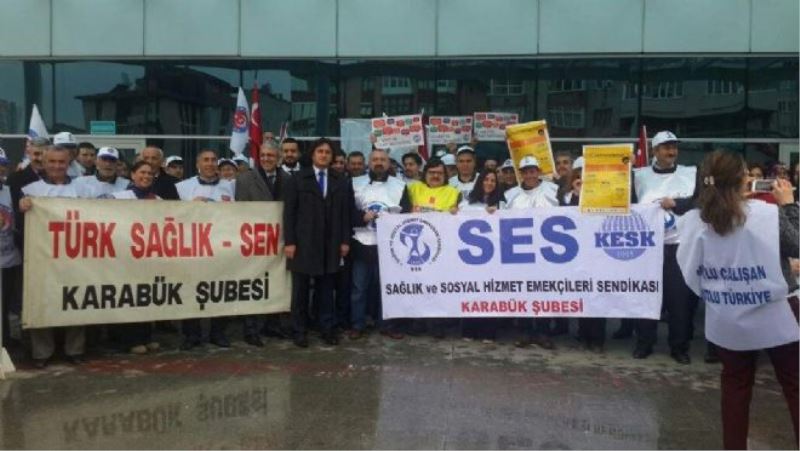 Memur-Sen’e bağlı Sağlık-Sen Karabük Şubesi üye sağlık çalışanları hastane önünde toplanarak bir basın açıklaması yaptılar.