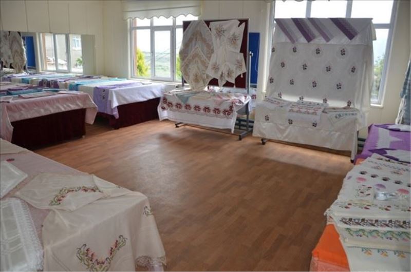 Konuşmaların ardından protokol üyeleri ve vatandaşlar kursiyerlerin özenle yaptığı ürünlerin bulunduğu sergiyi gezdi.