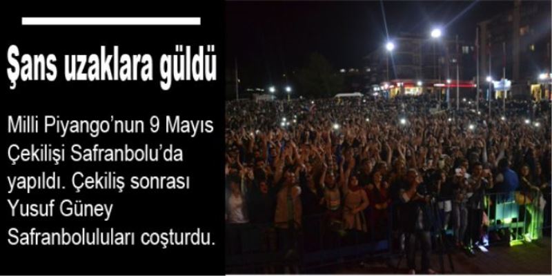 Milli Piyango İdaresi Genel Müdürlüğü ve Safranbolu Belediyesi işbirliğinde üzenlenen Milli Piyango 9 Mayıs Çekilişi Misak-ı Milli Meydan`ında gerçekleştirildi. Çekilişe; Milli Piyango İdaresi Genel Müdürü Recep Biçer, Safranbolu Kaymakamı Murat Bulacak, Safranbolu Beledye Başkanı Necdet Aksoy, davetliler ve Safranbolu halkı katıldı. 0 ve 9 rakamlı amortii numaralarının çekilmesinin ardından Safranbolu Belediye Başkanı Necdet Aksoy butona basarak, 2 milyon liralık büyük ikramiyenin isabet ettiği numarayı belirledi. Çekilişte, 2 milyon liralık büyük ikramiye, '514623' numaralı yarım bilete isabet etti. Biletlerin birinin Trabzon merkez, diğerinin ise Kuzey Kıbrıs Türk Cumhuriyeti`nde satıldığı açıklandı. Safranbolu Kaymakamı Murat Bulacak da, 200 bin lira ikramiye kazanan '531222' numarayı belirledi. Daha sonra Milli Piyango İdaresi tarafından vatandaşlara dağıtılan kuponlarla 82 ekran 5 LCD televizyonun teslimi yapıldı.