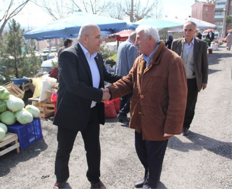 AK Parti Karabük Milletvekili Aday adayı Sedat Namal, seçim çalışmaları kapsamında pazarcı esnafını ziyaret etti