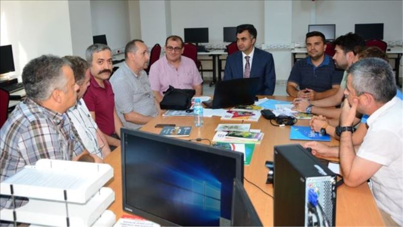 Komisyonda görevli öğretmenleri ziyaret eden İl Milli Eğitim Müdürü Mehmet Fatih Vargeloğlu komisyon üyelerinden çalışmalar hakkında bilgi alarak öğretmenlere başarılar diledi.