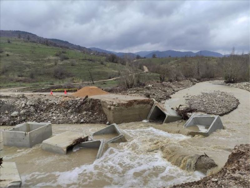 İlçe Kaymakamı Büşra Güneş, kuvvetli sağanak yağış sonrası meydana gelen su taşkınları ve toprak kayması yaşanan bölgelerde incelemelerde bulundu. Zarar gören köprüde de incelemelerde bulunan Güneş, kısa sürede yeniden ulaşıma açılması için gerekli çalışmaların yapılması için talimatlar verdi.