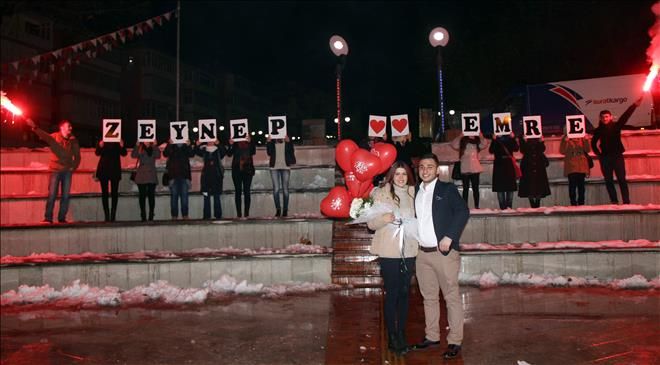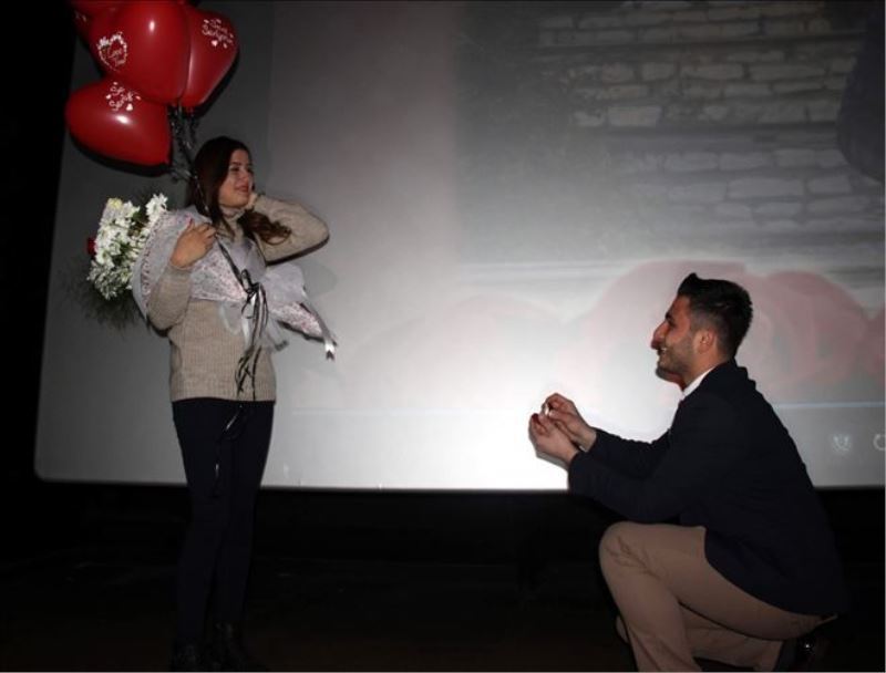Karabük Üniversitesi Sağlık Kurumları İşletmeciliği bölümü son sınıf öğrencisi sevgilisi Zeynep Akcomak´a sürpriz yapmak isteyen Emre Işık, günler süren bir video hazırladı. Evlilik teklifinden habersiz Akcomak arkadaşları ile birlikte vizyona giren ‘Düğün Dernek 2´ filmi için Safranbolu Atamerkez´de yer alan sinemaya gitti. Her şeyden habersiz filmin başlamasını bekleyen genç kız sinema ekranında sevgilisinin çektiği video izletilmeye başlayınca şaşkına döndü. Videoda üniversitede başlayan aşk hikayesini anlatan Işık, önce kendi anne ve babası ile ardından sevgilisinin anne ve babasının bir ömür boyu mutluluklar mesajı yer aldı. Görüntüleri gözyaşları içinde izleyen ve büyük mutluluk yaşayan Akcomak´ın arkadaşları da salonda her iki sevgilinin isimlerinin yer aldığı dövizleri açtı.