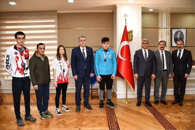 Vali Gürel, 03-07 Temmuz 2019 tarihleri arasında Ankara´da yapılan Uluslararası Kyokuskin Karete Şampiyonası Genç Bayanlar Kata Kategorisinde ikinci olan Hilal Gül, 08-12 Ocak 2020 tarihleri arasında Erzurum´da düzenlenen Okul Sporları Gençler Liselerarası Türkiye Boks Şampiyonasında 56 kiloda Türkiye ikincisi olan Berkan Arslan, 10-12 Ocak 2020 tarihleri arasında Didim´de yapılan Okullararası Yıldızlar Türkiye Halter Şampiyonasında +80 kilo silkmesinde koparma 76 kilogram, silkme 85 kilogram, totalde 161 kilograma ulaşarak Türkiye üçüncüsü olan Ahmet Melih Örenbaşı´yı tebrik ederek çeşitli hediyeler ile ödüllendirdi.