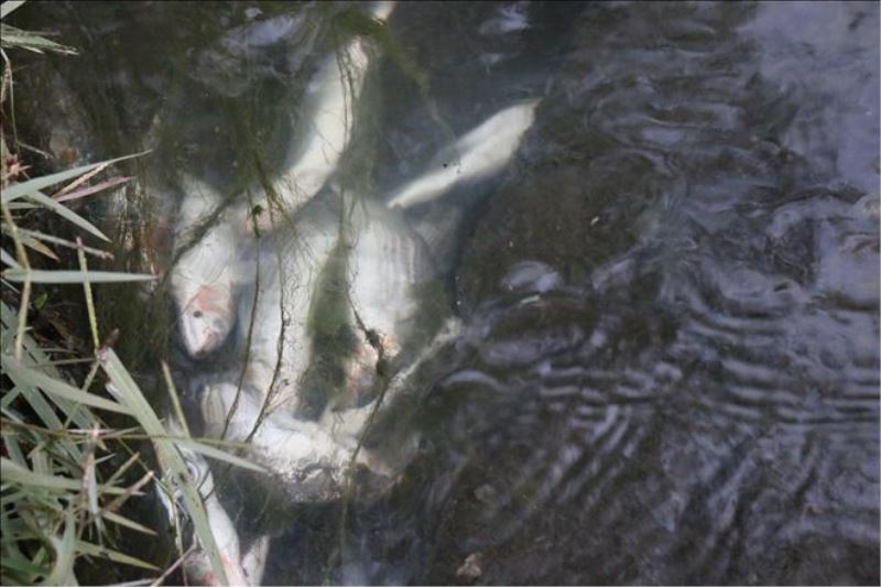 Kimliği belirsiz kişi veya kişiler tarafından kasa ile çaya atılan bozulmuş balıklar çevre kirliliğine neden oldu.