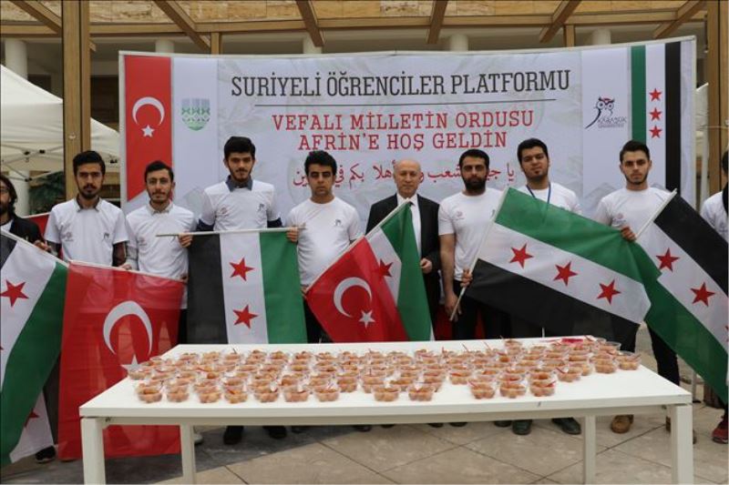 Karabük Üniversitesinde öğrenim gören Suriyeli öğrencilerin de bu zafer neticesinde lokma dağıttığını ifade eden Prof. Yaşar, ' Suriyeli öğrencilerimiz, özellikle Afrin´in zaferle neticelenmesi sonrası bize, milletimize teşekkür etmek sebebiyle bu organizasyonu yaptılar, kendilerine çok teşekkür ediyoruz.' diye konuştu.