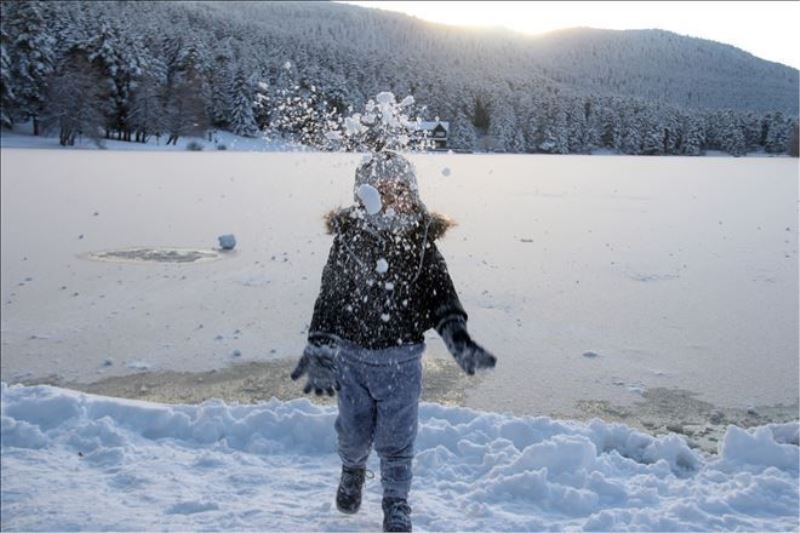 Kartpostallık görüntülerin oluştuğu Gölcük Tabiat Parkı´ndaki gölün buz tutmasıyla haftasonu tatilini Gölcük´te geçiren tatilciler bol bol fotoğraf çektirdiler.
