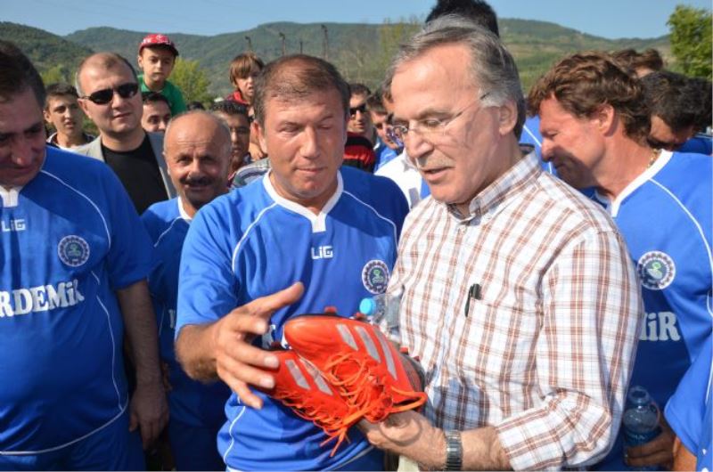 Yenice`de açılışı yapılan sentetik çim sahada kentin yöneticileri ve eski futbolcular maç yaptı. Teknik direktörlüğünü AK Parti Genel Başkan Yardımcısı Mehmet Ali Şahin`in yaptığı eski milli futbolcular Tanju Çolak, Savaş Demiral ve Erdi Demir ile KarabükValisi İzzettin Küçük, Vali Yardımcısı Tarkan Keskin, AK Parti İl Başkanı Ömer Ayar`ın forma giydiği şöhretler takımı ile teknik direktörüğünü AK PArtiKarabük Milletvekili Osman Kahveci`nin yaptığı Yenicespor takımı karşılaştı. 20`şer dakikadan 2 devre oynanan maçta şöhretler takımı 1-0 geriye düştüğü maçın ilk yarısını Savaş Demiral`ın ve Tanju Çolak`ın golleri ile 2-1 üstün tamamladı. Takım kaptanı Tanju Çolak devre arasında, 'Fenerbahçe`nin Konyaspor karşısında düştüğü duruma düşmememiz gerekiyor' diyerek arkadaşlarını motive etmeye çalıştı. Maçın ikinci yarısında Erdi Demir, AK Parti İl Başkanı Ömer Ayar ve Tanju Çolak`ın golleriyle maç şöhretler takımının 5-3 üstünlüğüyle sona erdi.