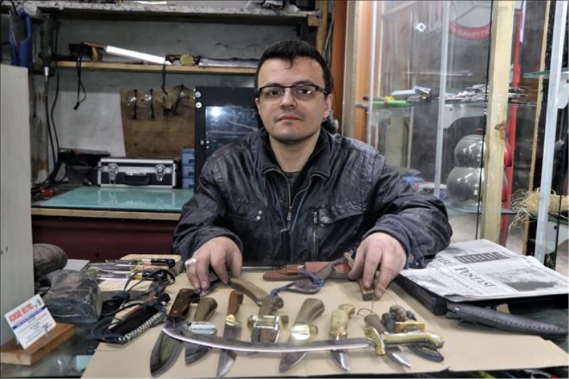 Açıkgöz, bıçak fiyatlarının 70 TL ile 1500 TL arasında değiştiğini belirterek, farklı bıçak kılıflarını da kendi yapıyor.