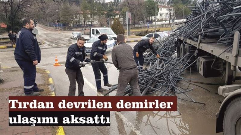 Edinilen bilgiye göre, Demirçelik kavşağından dönüş yapmak isteyen Satılmış Çeştepe yönetimindeki 78 BL 665 plakalı tırda yüklü bulunan hurda demirleri yola devrildi. Hurda demir parçalarının yolu kapatması sonucu trafikte aksamalar meydana geldi. Olay yerine sevk edilen trafik polisleri güvenlik önlemleri alarak ulaşımın kontrollü bir şekilde devam etmesini sağladı.