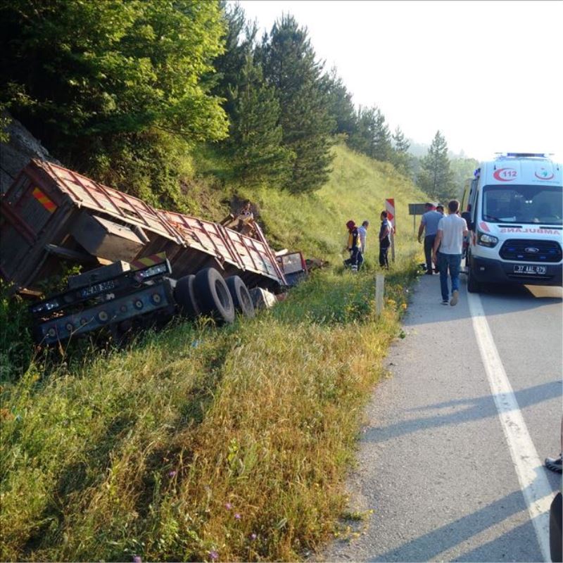 Kastamonu´da tomruk yüklü kamyonun uçuruma yuvarlandığı kazada, 2 kişi yaralandı.