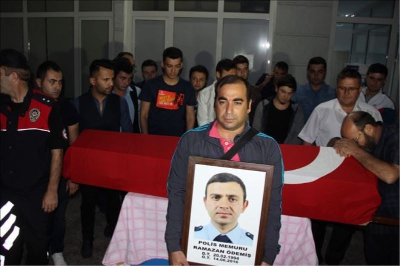 Trafik kazasında hayatını kaybeden polis memuru Ramazan Ödemiş´in Türk bayrağına sarılı naaşı, Karabük Üniversitesi Eğitim ve Araştırma Hastanesi morgundan Emniyet Müdürü Serhat Tezsever ve meslektaşlarının omuzlarında alındı. Ödemiş için İl Müftü Yardımcısı İbrahim Halil Demir tarafından cenaze namazı kıldırıldı.