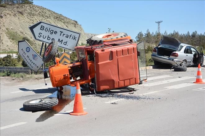 Edinilen bilgiye göre, kaza, Karabük - Ankara karayolunun Asit köyü mevkisinde meydana geldi. Eskipazar yönüne giderken kavşağa girmek için yavaşlayan Hasan Cinaz (65) yönetimindeki 37 HA 957 plakalı traktöre, arkadan gelen İbrahim Güllüoğlu`nun (45) kullandığı 74 BD 343 plakalı otomobil çarptı. Traktör devrilirken, otomobil yol kenarındaki trafik levhalarına çarparak durdu. Sürücülerin yaralanmadığı kazada otomobilde bulunan Ayvaz ve Leyla Güllüoğlu ile Tuncay Kalkancı yaralandı. Yaralılar, ambulanslarla KBÜ Karabük Eğitim ve Araştırma Hastanesi`ne kaldırıldı. Kazayla ilgili soruşturma başlatıldı.