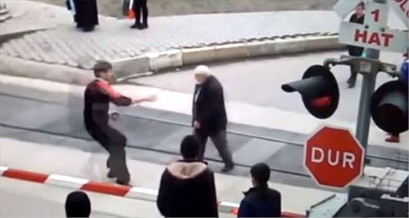 Balıkpazarı mevkiinde bulunan hemzemin geçidinde yaşanan olay güvenlik kamerasına saniye saniye yansıdı. Görüntüde, elinde baston bulunan yaşlı bir adam, ikaz işaretleri ve kapalı bariyerlere aldırış etmeden raylara ilerliyor. Bu sırada hızla yaklaşan yük trenin makinisti, yaşlı adamı fark edince siren çalıyor. Sirenleri duyan yaşlı adam bu duruma kızarak el hareketleriyle makiniste tepki gösteriyor. Bu sırada hemzemin geçitte görevli TCDD personeli koşarak yaşlı adamı raylardan alarak trenin altında kalmaktan kurtarıyor.