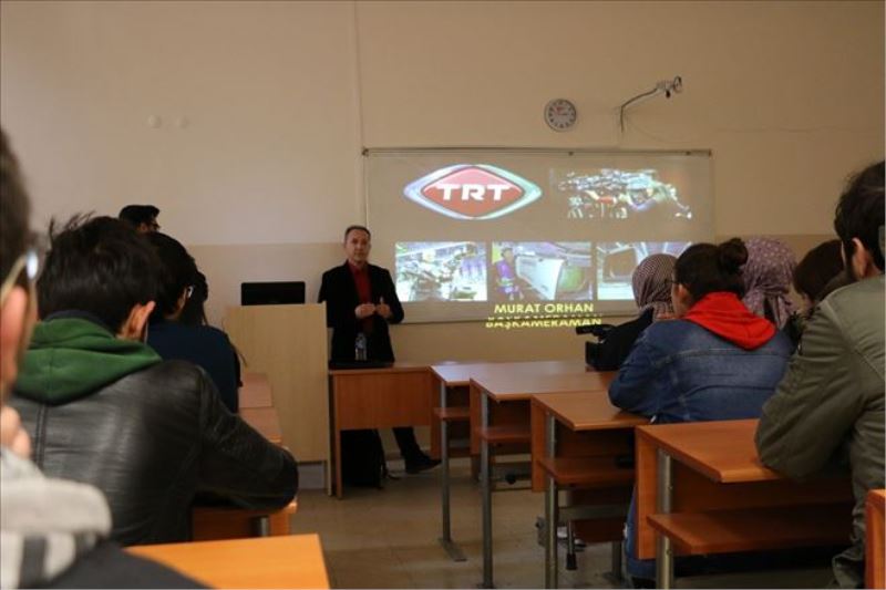 TRT baş kameramanı Murat Orhan ise öğrencilere kameramanlık mesleği hakkında bilgi vererek stüdyoda çekim teknikleri ve yöntemlerini uygulamalı olarak anlattı.