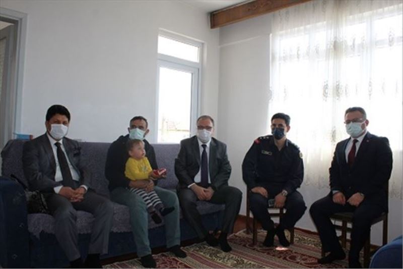 Hane ziyaretinde Kaymakam Türköz´e, İlçe Emniyet Müdürü Bülent Yeşilyurt, İlçe Jandarma Komutanı Emrah Aydın, İlçe Müftüsü İsmail Temur, Sosyal Yardımlaşma ve Dayanışma Vakıf Müdürü Yusuf Özyavuz eşlik etti.