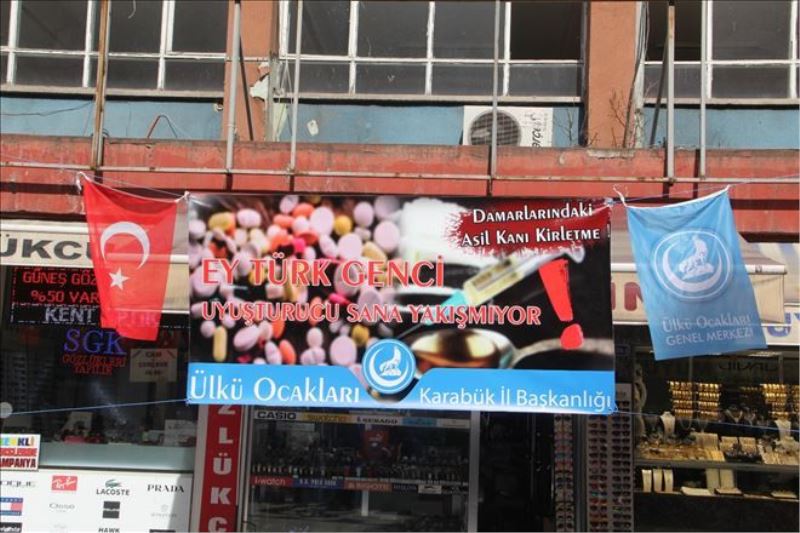 Konuyla ilgili açıklama yapan Karabük Ülkü Ocakları Eğitim ve Kültür Vakfı Ortaöğretim Birim Başkanı Orhan Mert, “Gün geçmiyor ki, ülkemizin herhangi bir yerinden gözü yaşlı bir anne veya yüreği yanık bir baba Yeşilay´ı , 155´ i 112´i arayıp bağımlılık tuzağına düşmüş yavrusu için yardım istemesin! Ölüm haberleriyle kamuoyunda arada yankı bulup gün yüzüne çıkan bu illet , mücadeleye rağmen kullanım oranları giderek artan Türk gençliğinin en can yakıcı sorunu haline gelmiştir. Ülkü Ocakları Karabük İl Başkanlığı olarak uyuşturucu ve madde bağımlılığının gençliğimizin en büyük tehlikesi olarak önümüze çıktığı bu dönemde Uyuşturucu İle Mücadele Platformu kurmuş uyuşturcuya savaş açmış bulunmaktayız .Genel Başkanımız Olcay Kılavuz Beyefedinin dediği gibi yeni cephemiz; Uyuşturucu ve madda bağımlılığıyla mücadeledir. Bu kapsamda gençliğe yönelik ´´ spor , kültür, sanat , eğitim ´´ gibi çeşitli faaliyetler yürümekteyiz bugün de bu faaliyetlerden biri olan uyuşturucu ve madde bağımlılığının zararlarını anlatan bir resim sergisi gerçekleştiriyoruz. Kısaca uyuşturucu madde kulanımıyla alakalı şu bilgileri sizlere paylaşmak istiyoruz. Uyuşturucu madde kullanımının ülkemizde ve dünyada son zamanlarda giderek yaygınlık kazandığı yapılan araştırmaların gösterdiği bir gerçektir. Dünyada 180 milyon insan uyuşturucu kullanmakta ülkemizde ise en az bir kere kullananların oranı yüzde 2.7 şeklindedir. Bu artışın sebepleri ve bununla mücadele için yapılacaklar aslında hepimizin ortak meselesidir. Çünkü aynı hayatı, aynı ülkeyi, aynı sokakları paylaşıyoruz. Hepimiz aynı gemideyiz. Tarihî ve kültürel kökleri hala canlı olan, mensup olduğu ahlakî değerleri bir şekilde korumayı başarmış bir Türkiye´nin, geleceği olan Türk gençlerini de koruması elzemdir. Bizim hala gidilecek yolumuz, tükenmemiş umudumuz, gerçekleştirilecek ideallerimiz var. Bu noktada iki temel kurum baş rol oynamaktadır. Aile ve okul. Aile Eğitimi, Okul temelli çalışmalar, Tedavi, Sivil toplum kapasitesini geliştirme ve Medya kampanyaları bu hususta daha fazla yaygınlaştırılmalıdır. Gençlerimizi yokluğa sürükleyen ve sosyal, bedensel, ruhsal tahribata yol açan madde bağımlılığına karşı bir kez daha ´Maddenin esiri değil Vatanın esiri olun ´ ´´Damarlarınızdaki asil kanı kirletmeyin ´´ diyoruz.”İfadelerini kullandı.