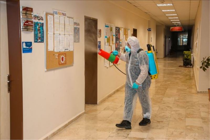 KBÜ tarafından ana kampüs başta olmak üzere tüm yerleşkelerin içerisinde ortak kullanım alanları ve köşe ekipler tarafından dezenfekte ediliyor. Ekipler tarafından sınıflar, koridorlar, personel odaları gibi üniversitenin her yerinde dezenfekte çalışmaları yapılıyor.