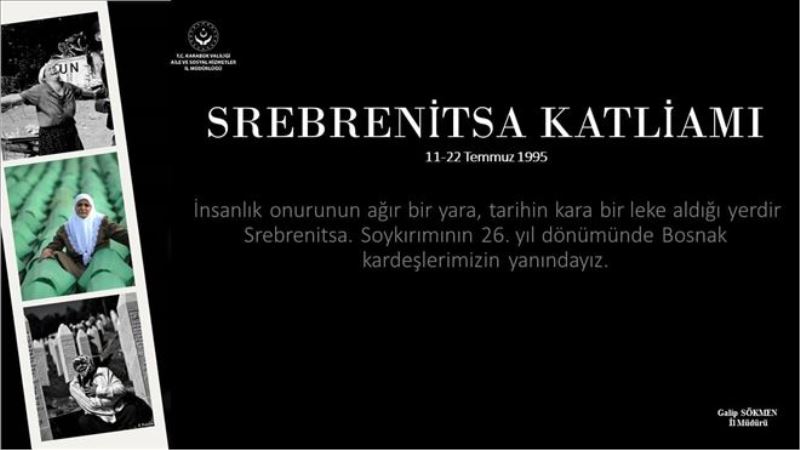 Karabük Aile ve Sosyal Hizmetler İl Müdürü Galip Sökmen, “SrebrenitsaKatliamı´nı biz unutmadık, unutmayacağız!” paylaşımı yaparak 26 yıl önce katledilenleri andı.