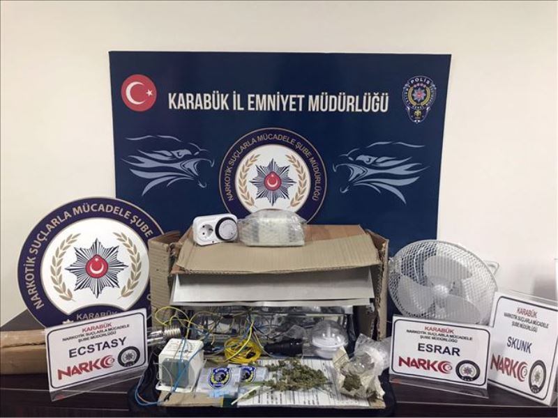 Edinilen bilgiye göre, Karabük Emniyet Müdürlüğü Narkotik Suçlarla Mücadele Şube Müdürlüğü ekiplerince ‘uyuşturucu madde temin ve ticareti´ yaptıkları tespit edilen şahıslara yönelik operasyon yapıldı. Operasyon kapsamında uyuşturucu madde ve temin suçundan tutuklanan T.U (28) isimli şahısla bağlantısı olduğu değerlendirilen F.E (20) isimli şahsın evine operasyon düzenlendi. Yapılan aramada uyuşturucu madde üretip kurutmak için oluşturulan düzenek, kurutulmuş bir miktar esrar ve Skunk ile extacy tabir edilen uyuşturucu haplar ele geçiridi.